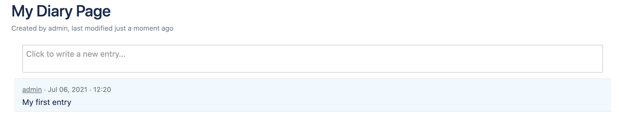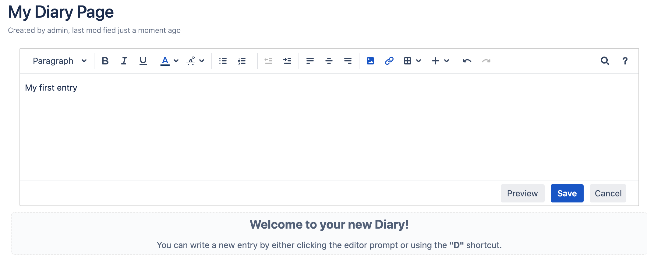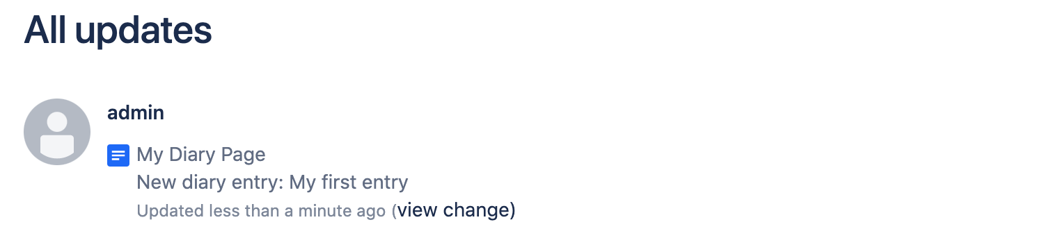 Note that if you save a new entry there will be a message about it on the updates stream of your Confluence. This also includes a short preview of what you have written.