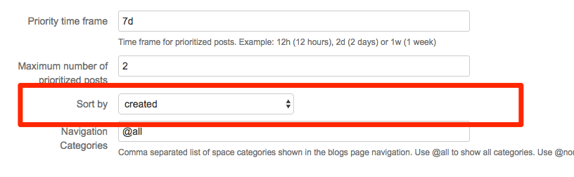 Blog posts on the dashboard and on the blogs overview page can be sorted by the creation date, the modification date (when a blog post was edited) or by the date of the last comment.