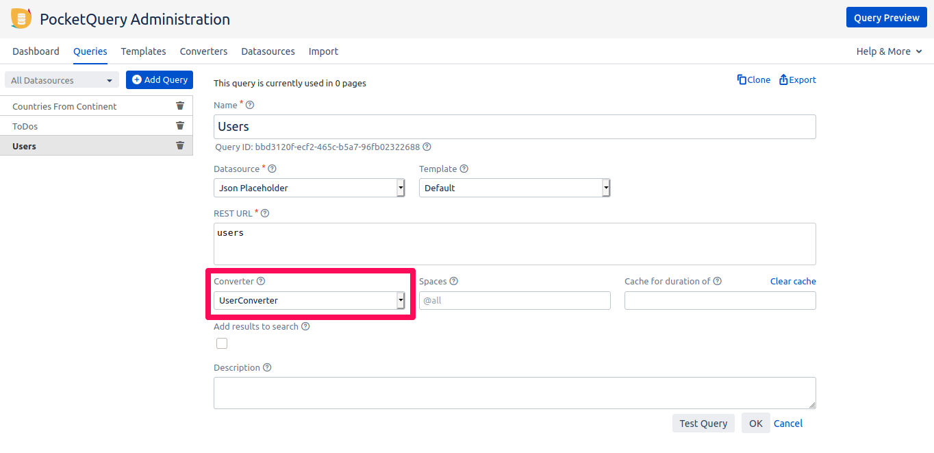 Save your converter. Next, go to the REST query, select the new converter from the dropdown and save.
