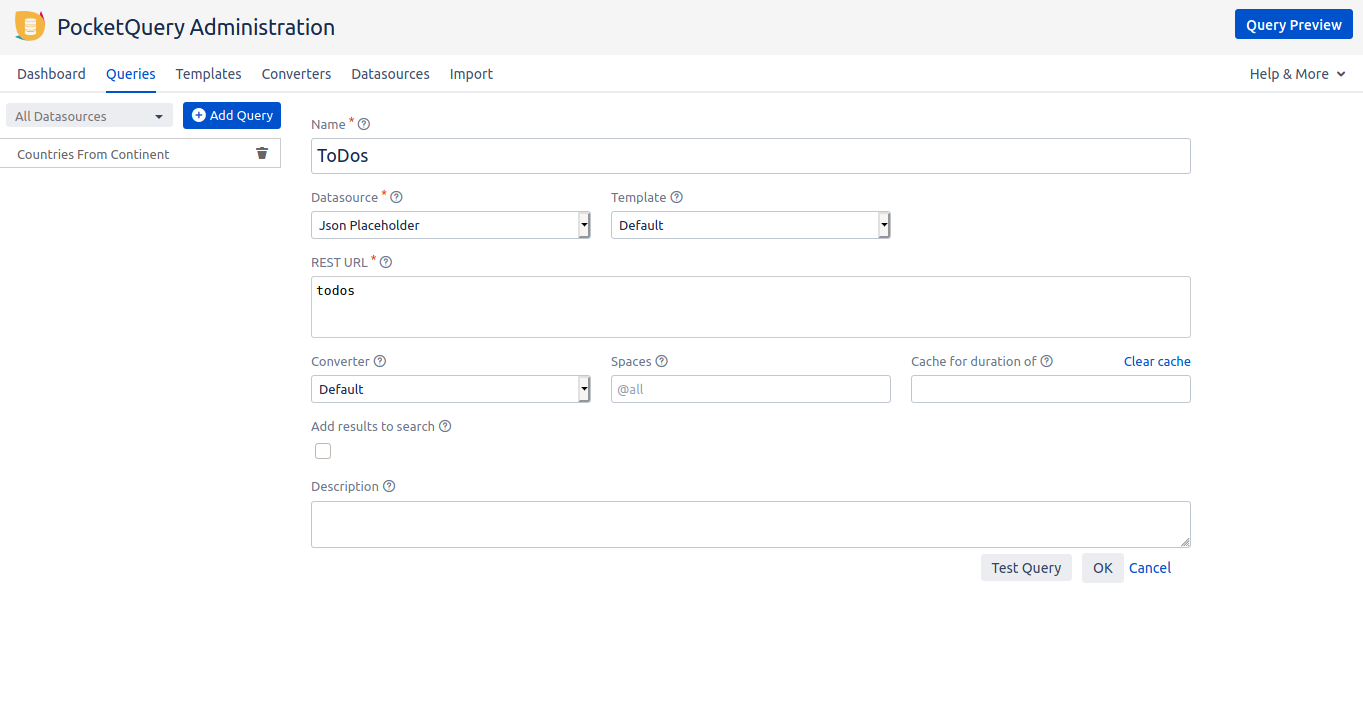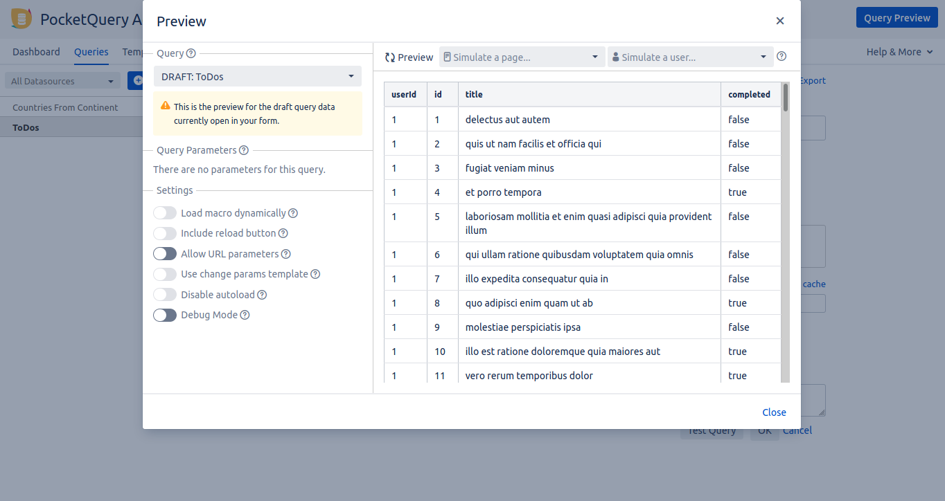 https://jsonplaceholder.typicode.com/Test URL: The test query, that will be used to check if the datasource is set up correctly. In this case use