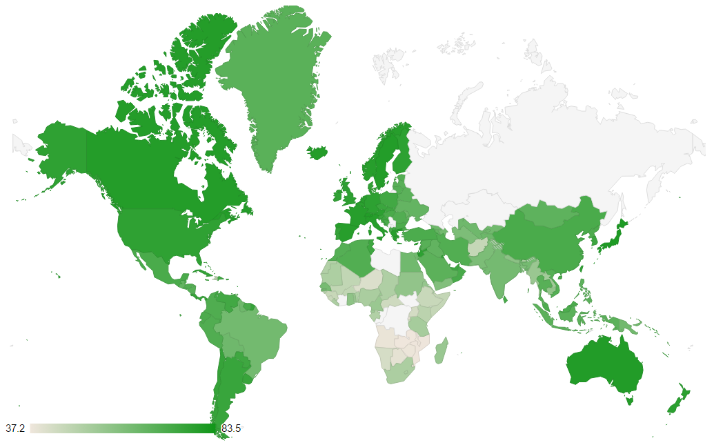 As always, you can use any configuration options you can use in Google Charts - find the options on the Google Charts manual pages. Simply pass an options object to the PocketQuery.chart() call like this and e.g. focus on Africa and change the coloring: