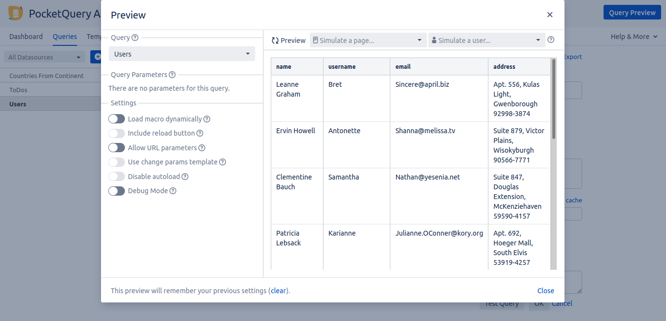 First, we create a new Query called Users, using users as REST URL: