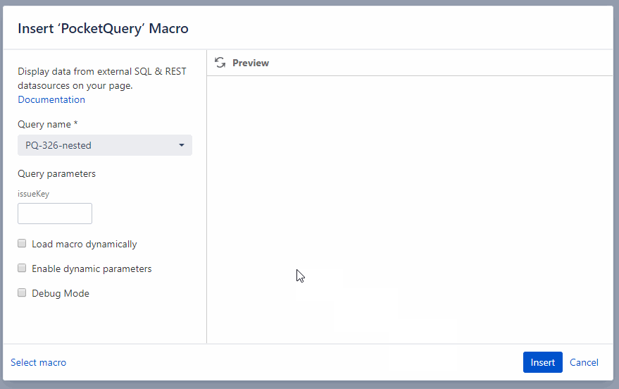 We then put a pocketquery-dynamic-load-container into the dialog, that we later want to render the nested Query into.