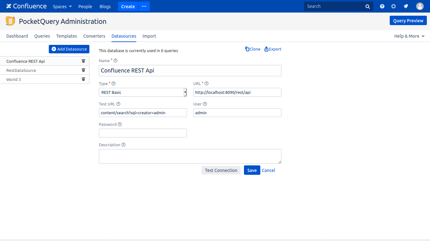There are five types of REST datasources available in PocketQuery. All of them share the fields: