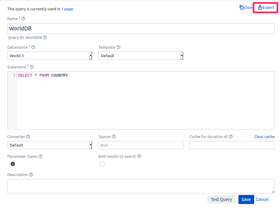 This page is about the import and export of single entities in the PocketQuery administration. If you want to export all of your entities at once for backup or migration, this can be done by a Confluence administrator, as described here: The PocketQuery Administration