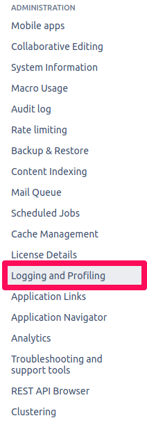 To do this, navigate to Logging and Profiling of your Confluence configuration: