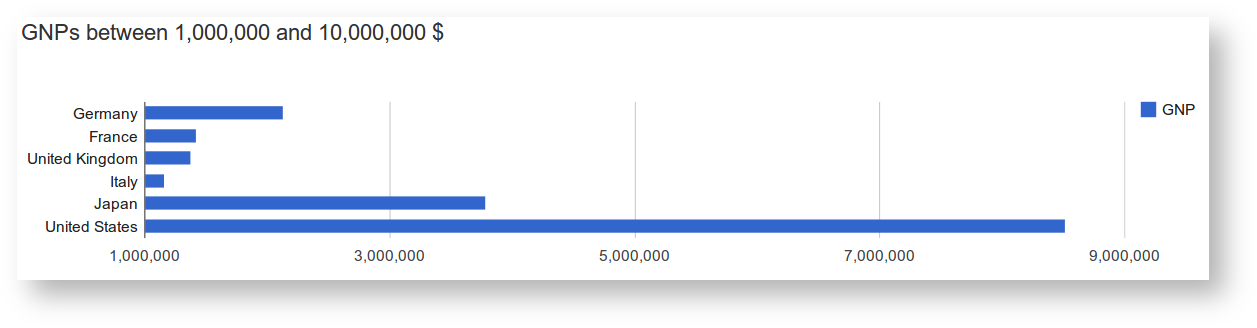 The Google Charts library is embedded in PocketQuery and PocketQuery exposes a simple JavaScript API on the global PocketQuery object. This makes drawing Google Charts in templates very simple. A PocketQuery template rendering the query result table with Google Charts is as easy as <script>PocketQuery.chart()</script>. See the documents Javascript API Provided By PocketQuery and Templating JS API for more information.