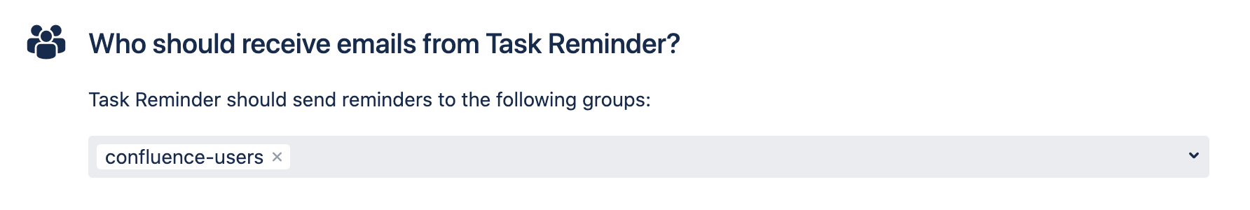 In this section you can select up to 5 groups to receive emails. Each user in the selected groups will receive an email if they have any unresolved tasks. We have found that 5 groups meets the needs for the majority of use cases. If your user set cannot be covered by 5 groups, we recommend creating a group specifically for Task Reminder.