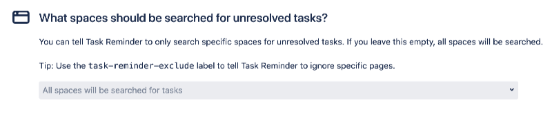 To change your Task Reminder settings, go to the global Confluence administration, scroll to the Apps section of your sidebar and click Task Reminder Settings.