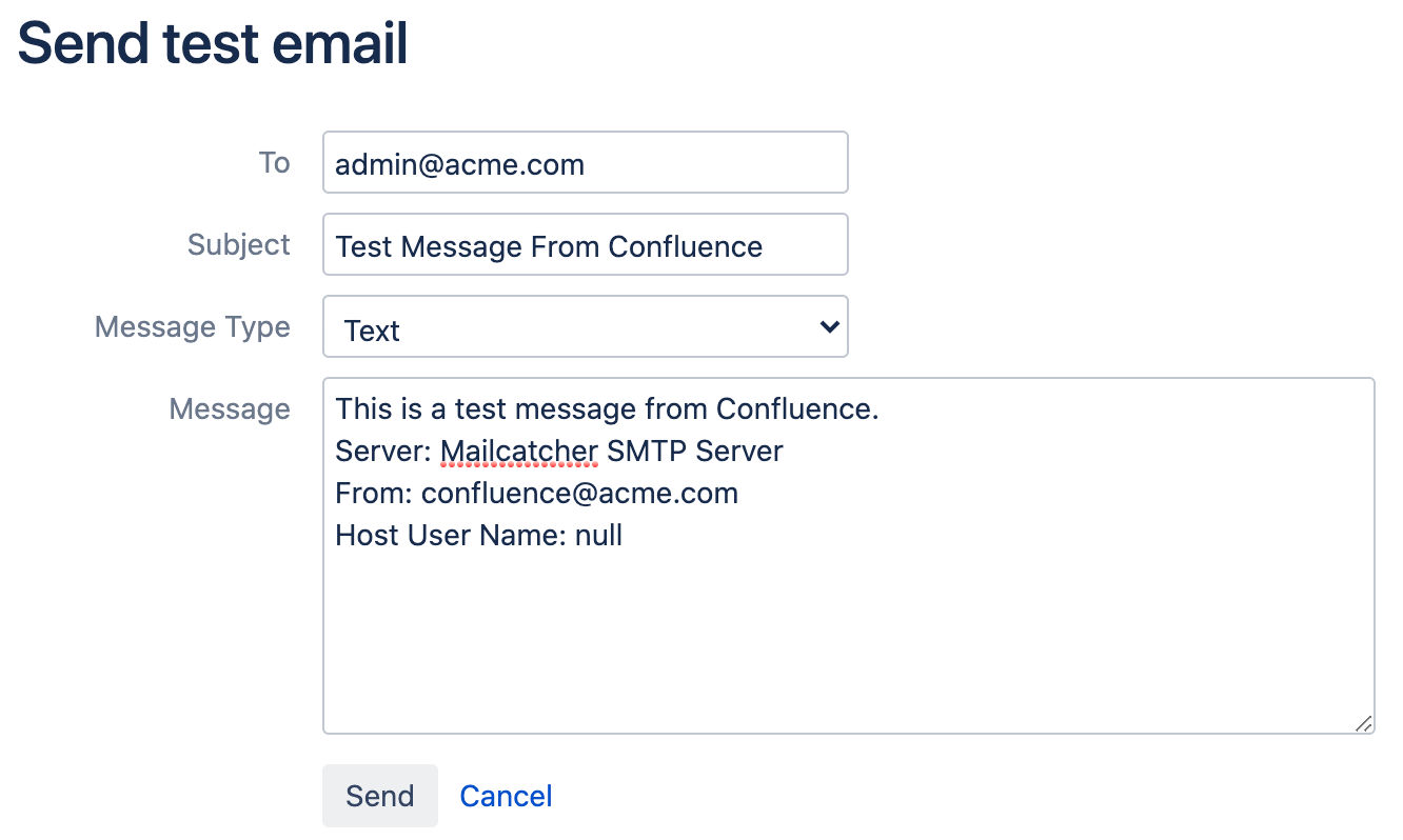 To make sure, everything is set up correctly, Confluence gives you the option to send a test email: