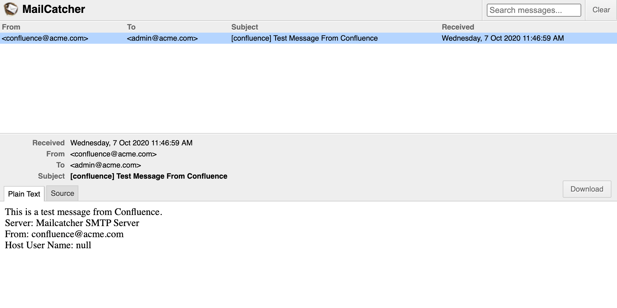 For example, to start an instance of mailcatcher via docker, run this command on your Confluence machine: